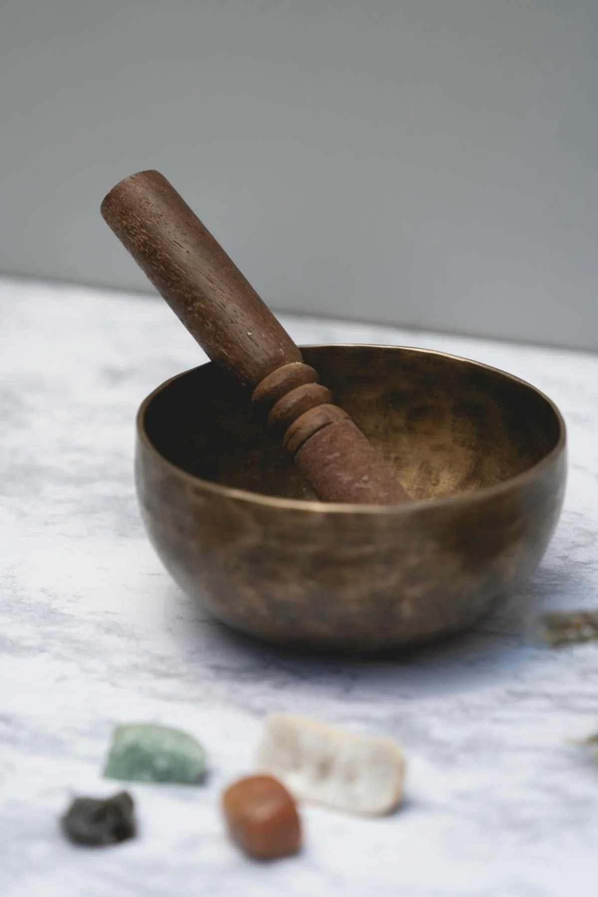 A sound bath is an ancient practice whereby participants lie down and relax on individual mats while being enveloped (or “bathed”) in unique sound frequencies and vibrations from instruments such as singing bowls, chimes, gongs, and drums. These frequencies and vibrations can resonate throughout the body, calming the sympathetic nervous system (the “fight or flight” response) while activating the parasympathetic nervous system thus, encouraging a release of tension and fostering an overall sense of peace and well-being.